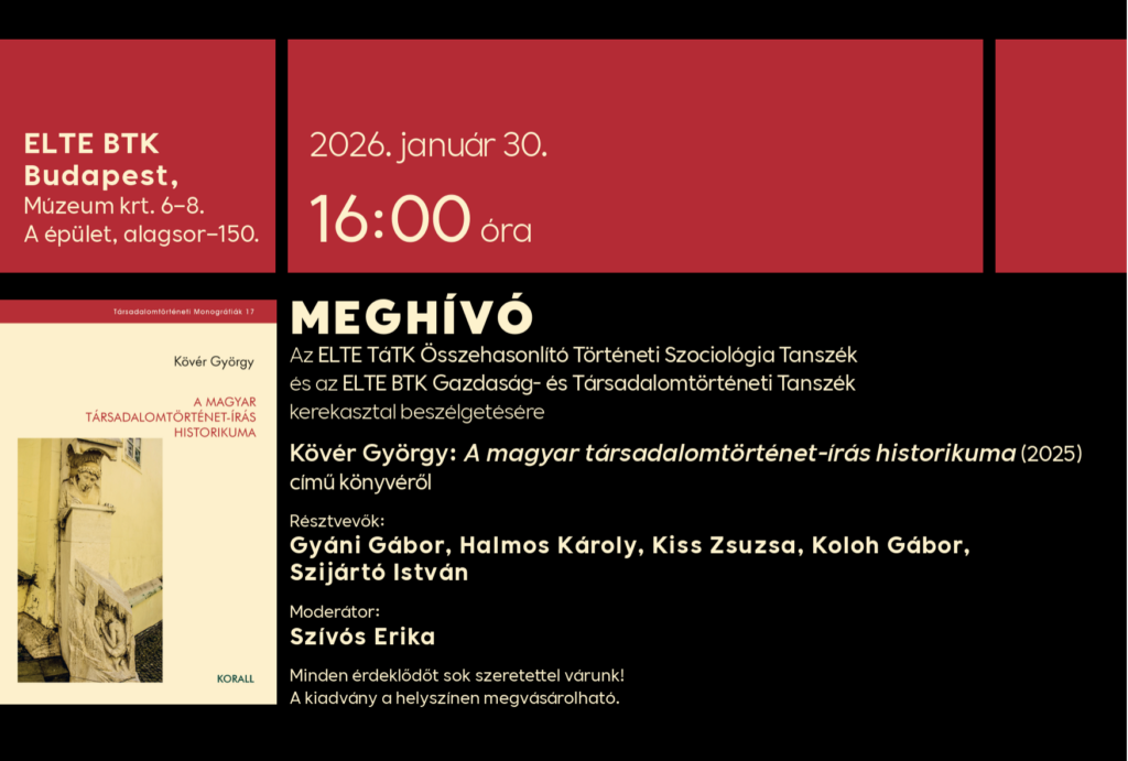A szerkesztőség ezenfelül vár a tematikus blokkhoz kapcsolódó recenziókat, valamint a témakör társadalom- és kultúrtörténeti eredményeit bemutató, review article jellegű írásokat is. A szám felelős szerkesztői: Granasztói Péter és Majorossy Judit. Várjuk a tervezett tanulmányról készült rövid, legfeljebb 3000 leütés terjedelmű absztraktokat legkésőbb 2026. március 5-ig. Az absztrakthoz kérünk mellékelni egy rövid cv-t (alapinformációk a leendő szerzőről) és maximum öt fontosnak ítélt publikáció bibliográfiai leírását. A szerkesztőség március folyamán dönt a felkérésekről. Az elfogadott rezümékből megírt tanulmányok leadási határideje 2026. augusztus 15., a tervezett szám várható megjelenési ideje 2026. december vége. Az absztraktokat a következő e-mail címekre kérjük eljuttatni: pgranasztoi@gmail.com; judit.majorossy@gmail.com.